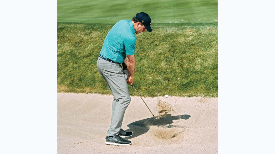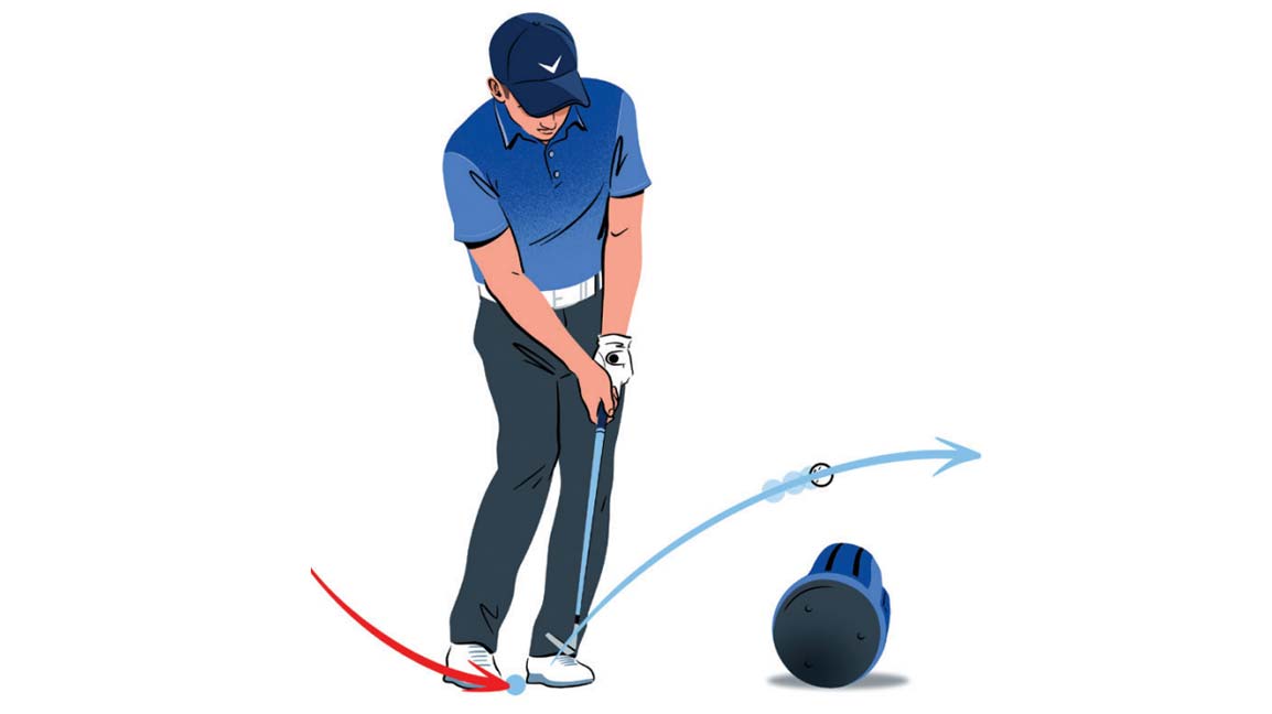 Rýchlosť začína na začiatku vášho švihu. Či už to dokážete uháňať rýchlosťou 80 míľ za hodinu, alebo 120-a ako ja, kľúčom k dosiahnutiu rýchlosti lopty je vytvorenie šírky vášho jedla so sebou. Vidím veľa rekreačných golfistov, ktorí sa snažia vytvoriť úplný obrat alebo rotáciu. Tento problém sa začína počas odberu. Mnoho golfistov len zdvihne vodiča a otočí ramená.Aby ste dosiahli maximálnu rýchlosť, musíte vytvoriť maximálnu šírku. Toto je niečo, na čom veľa pracujem. Skúste vziať palicu späť takmer tak ďaleko, ako môžete, a vytvorte takú šírku. Prirodzene, vaše telo s vami bude chcieť zatočiť. To vytvorí väčšiu rýchlosť, keď zostúpite zhora.-Cam Champ Vzdialenosť je kráľ, ale vzdialenosť a presnosť je konečný cieľ. Aby ste zvládli oboje, musíte pri náraze úplne vysunúť ruky. Skúste toto: Odpalte loptu a umiestnite ďalšie odpalisko šesť palcov mimo prvého v 45-stupňovom uhle. Vaším cieľom je odpáliť loptu na prvom odpalisku a prehodiť hlavu palice cez druhé. Urobte to a automaticky zasiahnete všetky správne pozície. Predstavte si, že na čele klubu je pripojený bič. Ak chcete, aby bič praskol v spodnej časti švihu, musíte zápästia a ruky „precvaknúť“ úderom bez toho, aby ste sa prehnali ramenami. Tu som na hriadeľ pripevnil kúsok stuhy. (Je to oveľa bezpečnejšie ako skutočný bič.) Trik je v tom, že vedome prinútite koniec stuhy „prasknúť“ priamo na spodku vášho švihového oblúka.Tento cvik je skvelý spôsob, ako odpútať myseľ od odbíjania loptičiek a namiesto toho sa zdokonaliť vo zvyšovaní rýchlosti hlavy palice. — Cheryl Anderson Najlepšia tréningová pomôcka, ktorá vám pomôže generovať viac rotácií pri úderoch žetónov? Je to váš golfový bag. Položte ju na zem dve stopy pred loptou a cez cieľovú čiaru. Zasiahnite triesky cez vrece pomocou pieskového klinu. Blízkosť vrecúška k lopte vás prinúti zasiahnuť loptičku prudko a s veľkým zrýchlením – dve klávesy na vytvorenie maximálnej rotácie pri krátkej hre. Vďaka profesionálom na turné to vyzerá tak jednoducho. Ale spôsob, akým hrajú údery z piesku, s loptou ďaleko vpredu a doširoka otvorenou tvárou palice, si vyžaduje väčšiu rýchlosť hlavy palice, než dokáže väčšina amatérov zohnať. Uľahčite si to tým, že sa postavíte tak, aby ste mali ramená a tvár kolmo na palec a loptičku mierne pred stredom. Odtiaľ,budete musieť zaryť čepeľ do piesku, aby ste vypichli loptičku, ako keby ste hrali zo zasypanej lži.Je menej pravdepodobné, že ho odpálite alebo ho chytíte ťažkým a – čo je najdôležitejšie – budete na greene.— Kevin Sprecher Umiestnite pravítko na krbovú rímsu alebo komodu, jedno, ktoré je len vyššie ako vaša hlava a druhé, ktoré je približne vo výške brady. Robte falošné výkyvy bez toho, aby ste narušili pravítko. Teraz ste stabilný – a pevný. #moggacademy Čím viac úchop spočíva vo vašej dlani, tým ťažšie je zavesiť a vytvoriť silu. Opak je pravdou, keď je rukoväť v prstoch. Nastavte rukoväť diagonálne cez vaše číslice, ako je to znázornené na obrázku vpravo hore, a potom omotajte podložku palca cez hornú časť rukoväte. Pripravte sa na nalievanie rýchlosti.