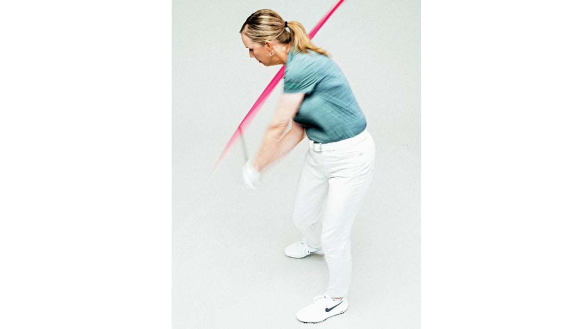 Ak krájate, je to pravdepodobne preto, že neuzatvárate prednú časť palice dostatočne rýchlo cez zónu úderu.Aby ste zlepšili svoju schopnosť dodávať hranatú palicu (vzhľadom na vašu dráhu), cvičte švihy s rukami rozdelenými na rukoväti. Rukou v rukavici držte palicu v jej normálnej polohe, potom posuňte spodnú ruku nadol na miesto, kde sa rukoväť stretáva s hriadeľom (foto vľavo). Keď si takto oddelíte ruky, uľahčíte si kvadratúru tváre pri náraze a podržíte rukoväť smerujúcu na pupok, keď sa hlava palice vysunie smerom k lopte. Dbajte na to, aby ste trávu čistili agresívne. Ak dokážete znovu vytvoriť pocit z cvičenia na skutočných hojdačkách, ste peniaze.-Krista Duntonová To, ako sa nad loptou postavíte, výrazne ovplyvňuje, ako dobre ju dokážete trafiť.Aby ste správne pripravili svoje držanie tela na akciu, postavte sa s palicou pritlačenou k stehnám.Potom sa predkloňte z bokov a mierne pokrčte kolená. Ak to urobíte bez hrbenia chrbta, vaše ruky budú visieť rovno dole. Perfektné. Teraz uchopte rukoväť rukou v rukavici a skontrolujte, či je v približne 45-stupňovom uhle k vášmu predlaktiu. Keď sa chytíte rukou v rukavici, pridajte druhú. Gratulujem! Ste v perfektnej polohe.— Sean Hogan Výstrely často idú nezmyselne kvôli nesprávne zarovnanej tvári palice na adrese.Umiestnite zarovnávaciu palicu tesne mimo golfovej loptičky tak, aby vytvorila 90-stupňový uhol s cieľovou čiarou (fotografia vyššie).Pri nastavovaní zarovnajte predný okraj palice s palicou a potom ju potiahnite späť do svojej bežnej polohy. Je to jednoduchý spôsob, ako zabezpečiť, aby bola tvár zakaždým hranatá.– Mark Durland